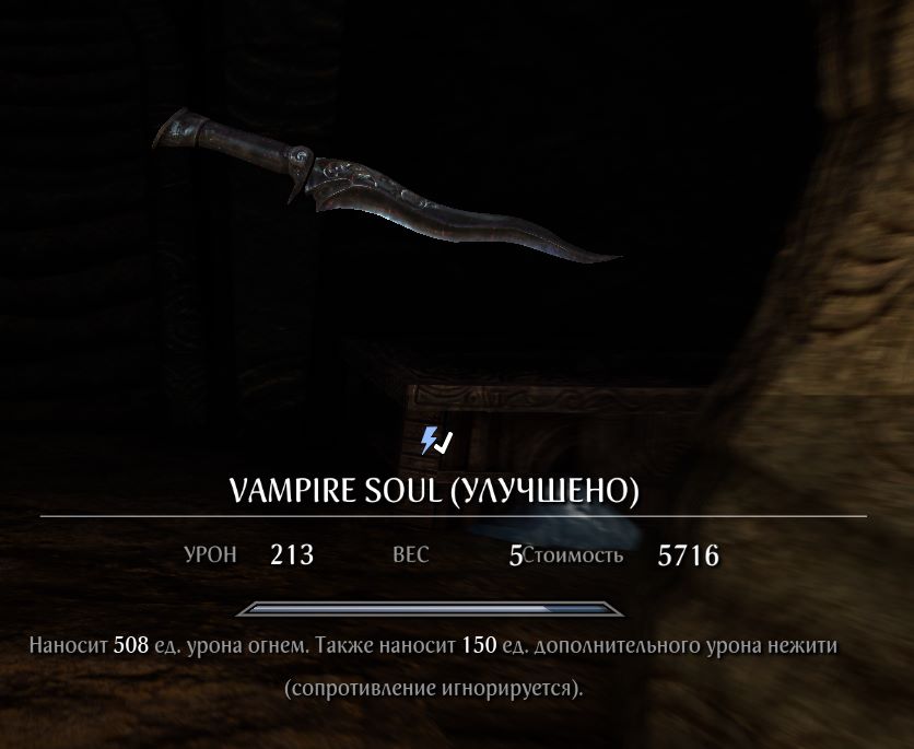 Т.е. в сумме (200 огнем + 150 по нежити) * 15 = 5250 ед. урона до исчерпания заряда. Одного кинжала может не хватить, так что лучше с собой таскать 2-3, переключаясь между ними горячими клавишами.